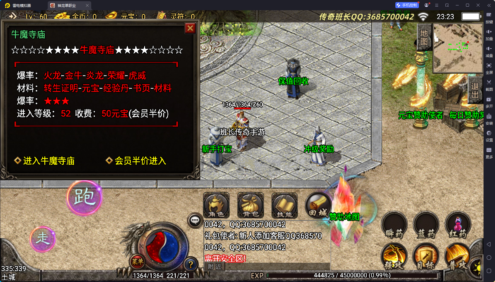 神龙万劫单职业攻速版本经过开区测试,版本是一个兄弟提供给班长的,在这里非常感谢他,版本的底版是神龙万劫三职业,在原先的基础上增加了每日打卡、鞭尸BUFF、GM管理后台、狂暴之力等,换了新的土城地图、新的装备外观,但客户端体积没有变化,依然还是800多MB,这很难得,如果要游戏有攻速,必须要购买老虎插件才行,如果不要攻速,就可以不用购买了,版本的可玩性很强,很多玩家都喜欢玩神龙万劫。套装多,加上版本有自动吃元宝、自动回收装备。太方便了,其他你们自己下载测试。