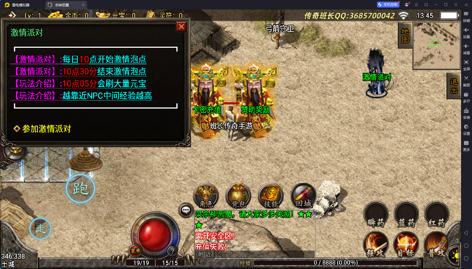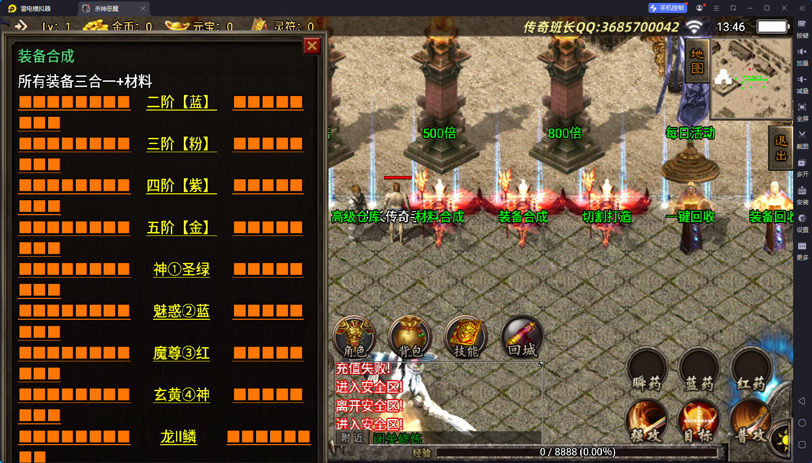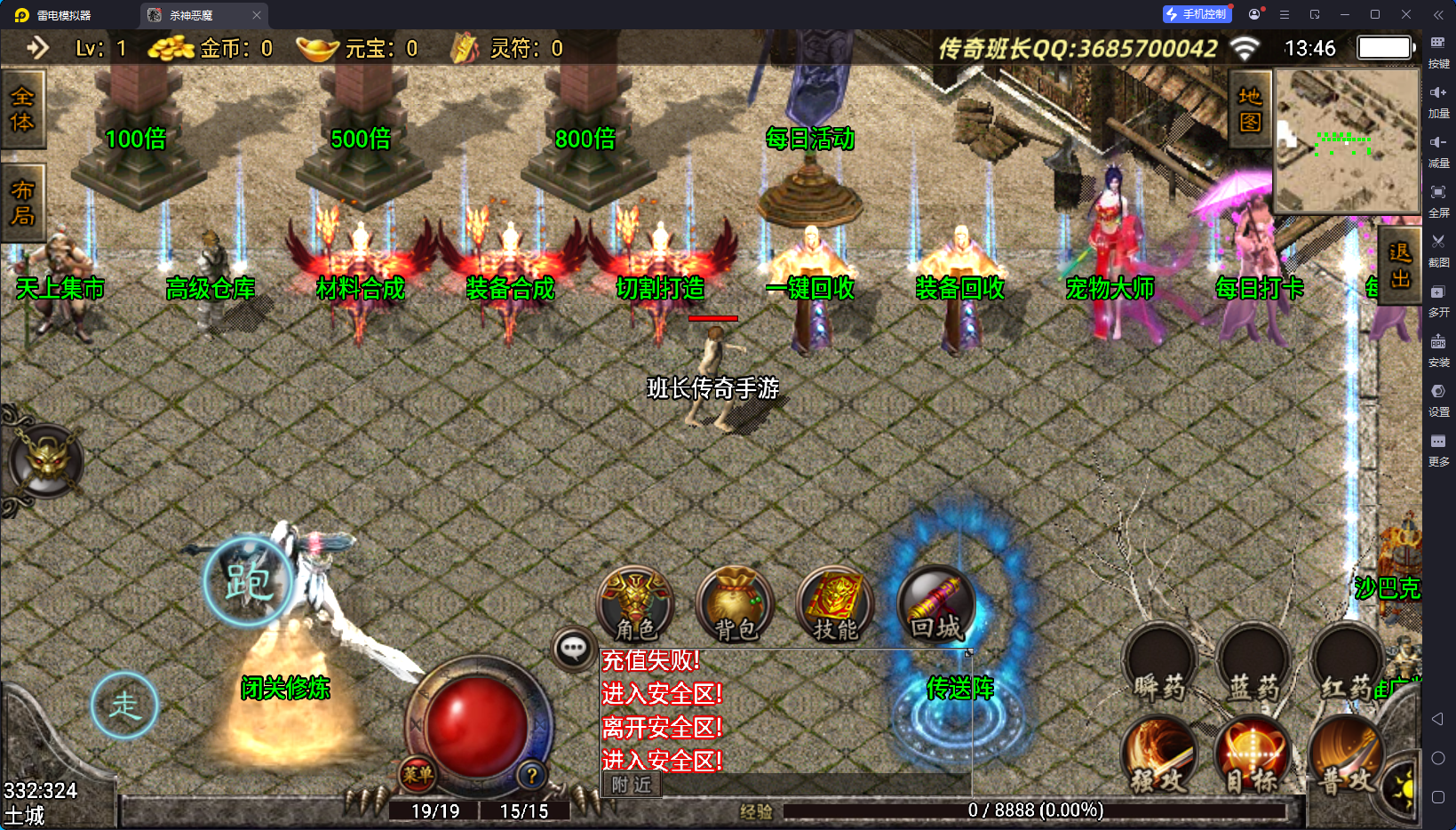 游龙庆帝杀神恶魔单职业手机版本经过班长亲自测试,这个手游版本还算不错,班长短暂的测试,没有发现明显的问题,版本的客户端也不算大,里面的新装备非常的多,版本有个比较有意思的特色,一:新上上线可以带一个宠物女神,宠物女神总共有六阶,如果你买了六阶宠物女神,那基本就是无敌的存在了,第二就是游戏虽然是单职业的,但战士可以学习法师和道士的主要几个技能,比如施毒术、魔法盾、流星火雨等。对战士来说,非常的有可玩性。当然,这个版本除了战士,也没有其他的职业了。版本玩着还行,喜欢的可以下载来试试。