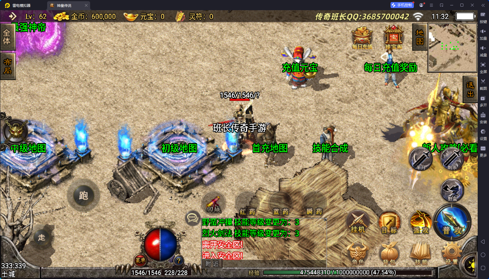神皇传说我本沉默微变版本是今天下午7-15日班长QQ上的兄弟贡献给班长的,经过班长优化处理,换成了套件版的,去掉了原先多余的几GB的文件,日志等,在班长的记忆中,有个兄弟开的版本就是这个,人气还非常的不错,但是不是一模一样的,班长也不确定,因为帮主只是看到他截图过土城,问了一些游戏加地图的问题,其他的方面,班长自己并没有进去体验,这个版本跟無名传奇土城和UI基本一样,但这个版本加了更多的新地图、新装备、新怪物,功能方面,不是很多,班长没有去庄园,不知道里面有多少功能性NPC,你们自己下载进来体验。