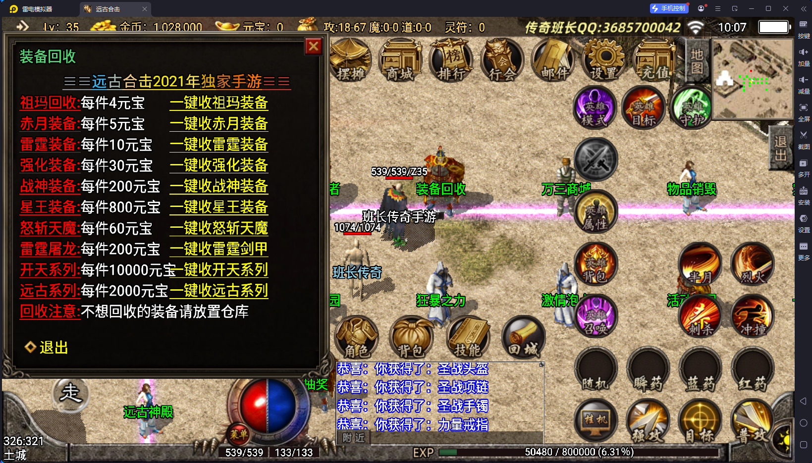 1.80远古合击独家手游版本使用的是战神引擎,版本是一个兄弟自学技术制作的独家完整版本,要班长帮忙测试一下,版本带了配套的盘古插件,属于复古类型的合击,终极装备就是三职业远古系列,版本有配套的安卓和苹果客户端。版本设计的比较人性化,新手上线,主号英雄就自带了学完了技能,还送2套祖玛装备,还有合击技能书。