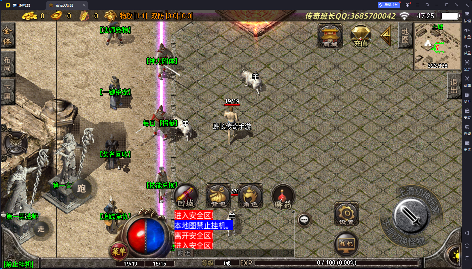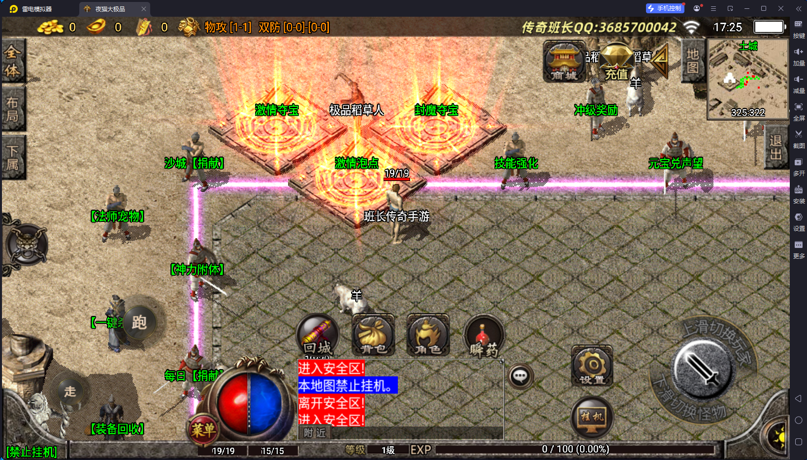 版本里面有擂台、赞助地图、狂暴捐献、追踪复仇、法师宠物等功能,其他的特色也没有发现,班长在短暂的测试过程,没有发现明显的问题。但雷霆衣服内观不能显示,但这并不影响什么,因为版本里面并没有用到这套装备,其他的方面你们自己测试。