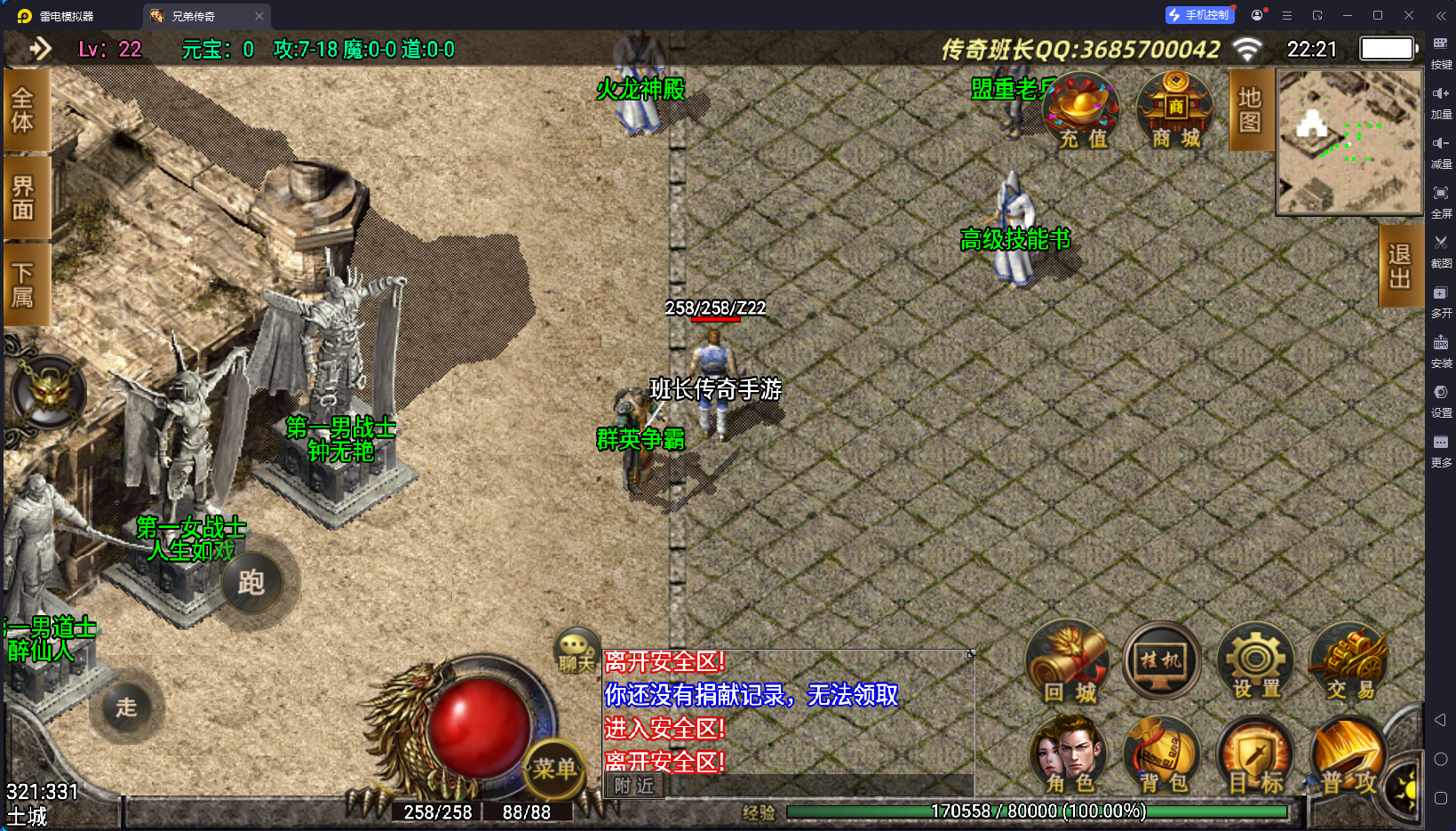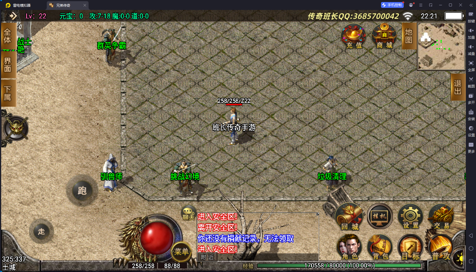 1.76兄弟复古手游版本使用战神引擎,有配套的安卓和苹果客户端,版本玩法简单明了,在原先176赤月上面增加了雷霆系列,也有火龙大殿地图,版本有会员系统,购买会员以后可以免费直接传送高级地图,比如六大重装,幻境七层等等,版本有些老旧,但底子还算完整,里面有新手任务系统,玩家上线,必须要完成任务以后,才能正常游戏,任务也做的比较直观,目的是引导玩家正常的体验游戏,但大部分玩家对传奇已经非常熟悉了。
