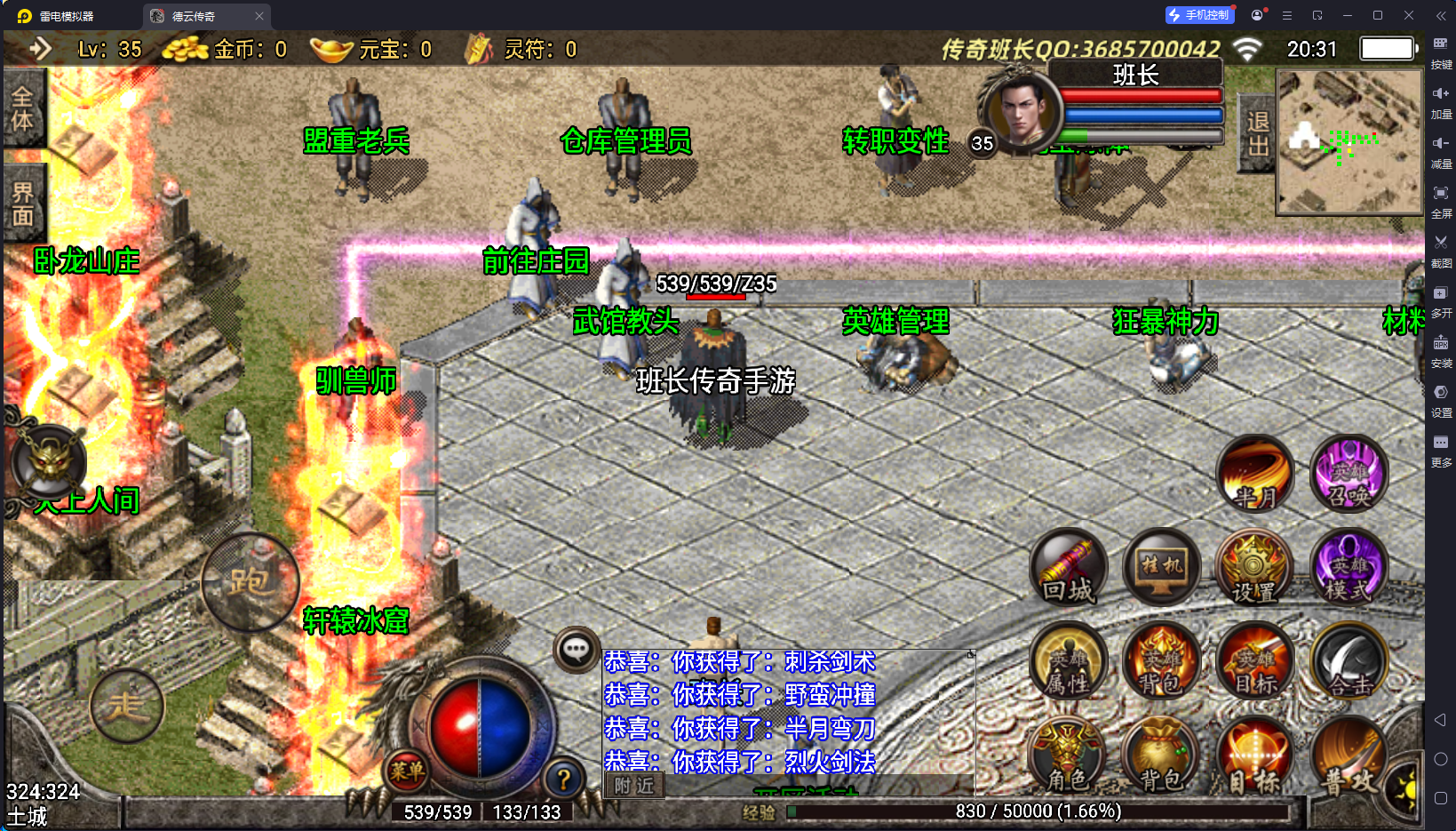 这个版本最大的特色就是地图特别多,客户端经过深度优化,画面清晰度不高,客户端安卓只有574MB,苹果300多MB,虽然版本里面的地图有几十张,但地图和怪物用的都是原始的,所以不占用什么空间,游戏里面增加了面巾装备。还有大量的合成升级的NPC,这个在土城正下方可以看到。其他的特色班长也没有发现。